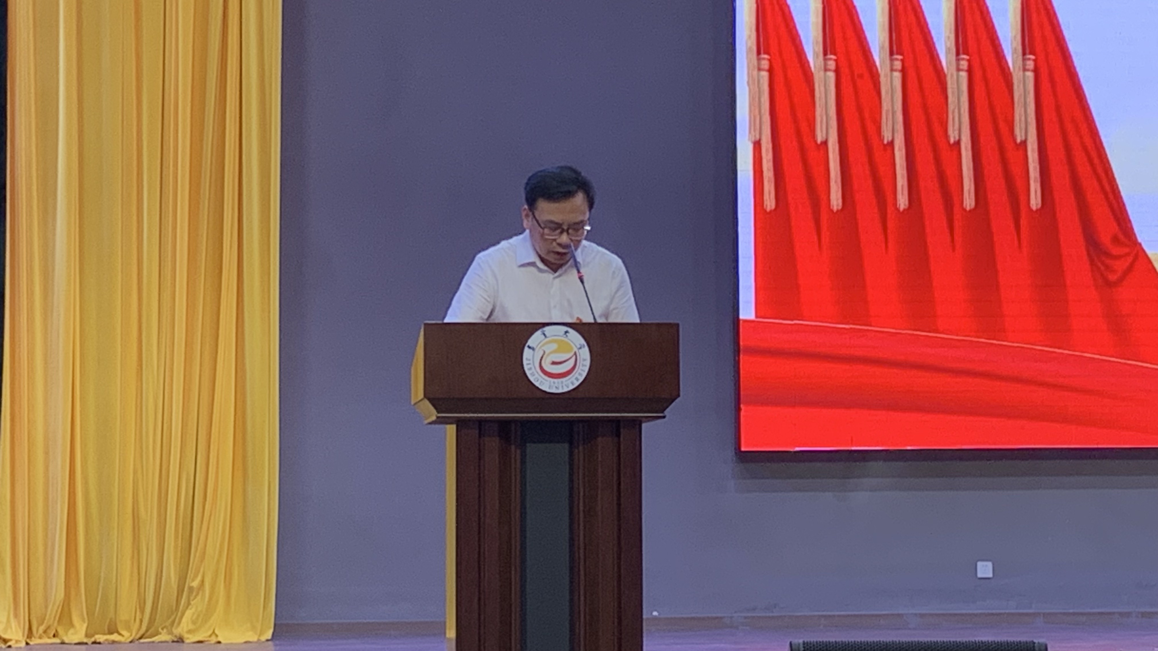 图为简功友书记发言