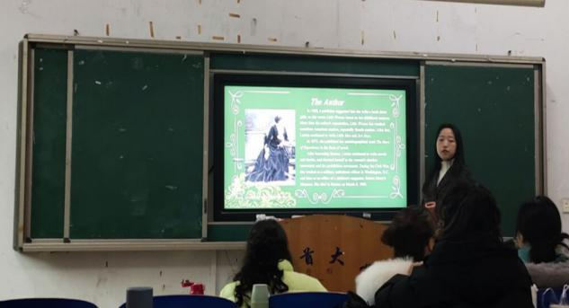 其他小组的同学也积极投入本次阅读分享的制作,从形式的选定到内容材料的搜集,都引起了同学们极大的学习兴趣和热情。大家充分利用网络优势,积极主动查阅相关资料,还在视频录制过程中结合了多媒体应用技术,插入了字幕、图片及视频等素材。Girls have to go into the world and make up their own minds about things.女孩就是要见见世面,才能决定自己想过什么样的生活。