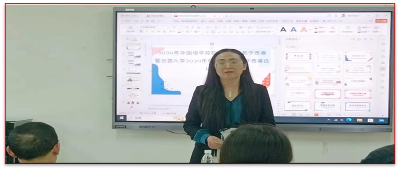 本次比赛严格按校赛要求、内容、程序进行。竞赛时长为 12 分钟,竞赛包括两个环节:①介绍课程数字化教学设计、数字化资源建设与应用;②某知识点的现场教学展示。竞赛采取现场抽签决定参赛顺序,评委现场评审的形式。由评委专家根据校赛评分细则对参赛教师以上两个环节的展示进行评审!评出必威bway2024年教师数字化教学竞赛等级名次,并在全院公示无异议后,给予院内表彰和奖励。并按学校文件要求在院级选拔赛成绩的基础上,推荐苏根英老师参加学校数字化教学竞赛。