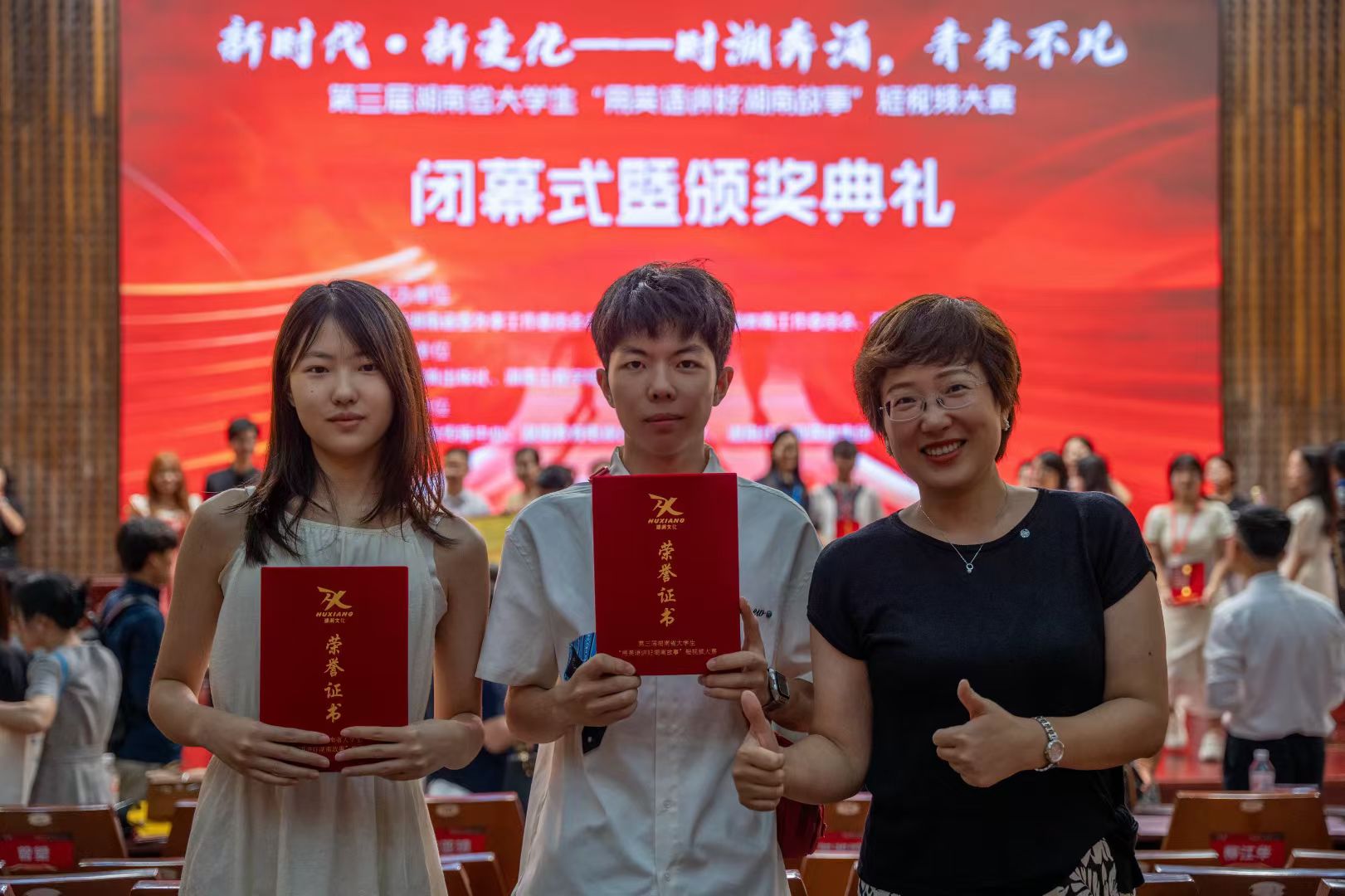 本网讯(通讯员 罗一优 谭亚迪)9月13日至15日,第三届湖南省大学生“用英语讲好湖南故事”短视频大赛决赛在湖南工程学院举办。该赛事由中共湖南省委外事工作委员会办公室、中共湖南省委教育工作委员会、湖南省教育厅主办,高等教育出版社、湖南工程学院、湖南日报社共同承办。betway在线体育参赛作品从本科组200余件作品中表现突出,斩获多个奖项:《她说:择一事,终一生》获一等奖,《守灯人》获二等奖,《“数”“续”“简”“缘”》与《十八洞村:乡村里的振兴火种》获三等奖。