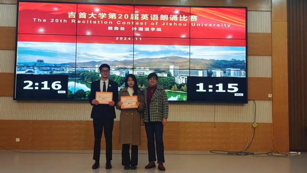 本次初赛有200多名选手报名参加,经过初赛评委老师层层筛选,共有32名来自不同学院或专业的选手入围决赛。决赛分为两个环节。第一环节为自选朗诵,每位选手在台上朗诵自选的英语文章,第二环节为即兴问答,现场回答主持人提出的一个问题。评委们依据参赛选手的语音语调、朗诵流畅度和情感表达评分。选手们准备充分,有的深情演绎经典诗歌,有的生动讲述英语故事,展现出扎实的语言功底和丰富的表现力。