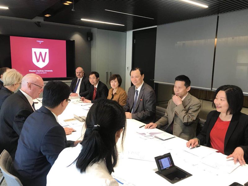 校党委书记白晋湘教授(右三)、必威bway原院长汤敬安教授(右二)率团与澳大利亚西悉尼大学交流