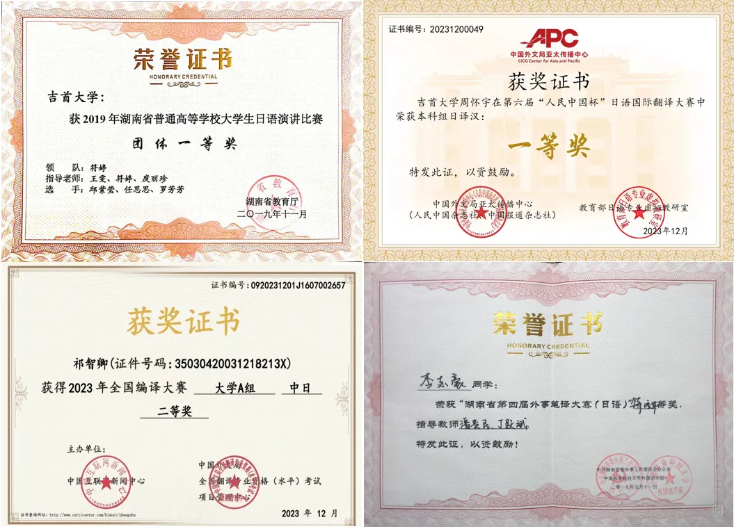 ✦近四年我院日语专业学生获得的部分学科竞赛奖励证书✦