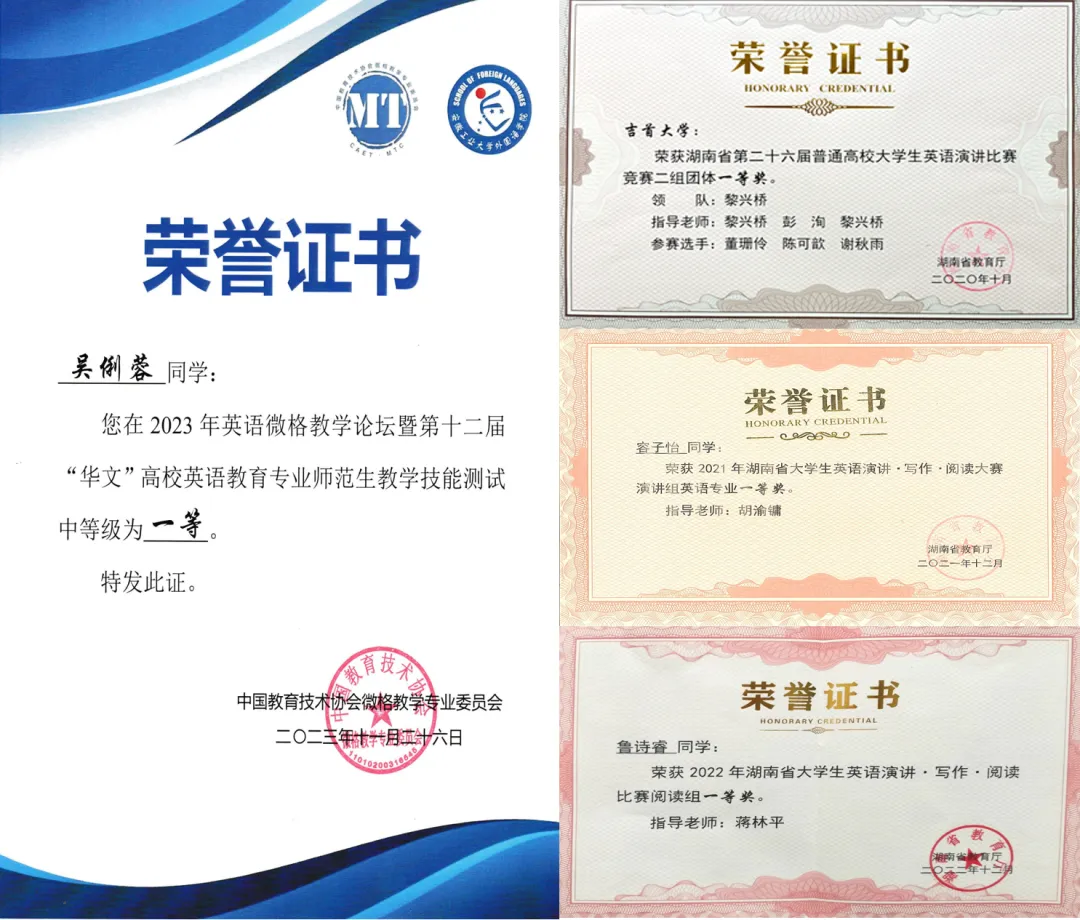 ✦近四年我院英语专业学生获得的部分学科竞赛奖励证书✦