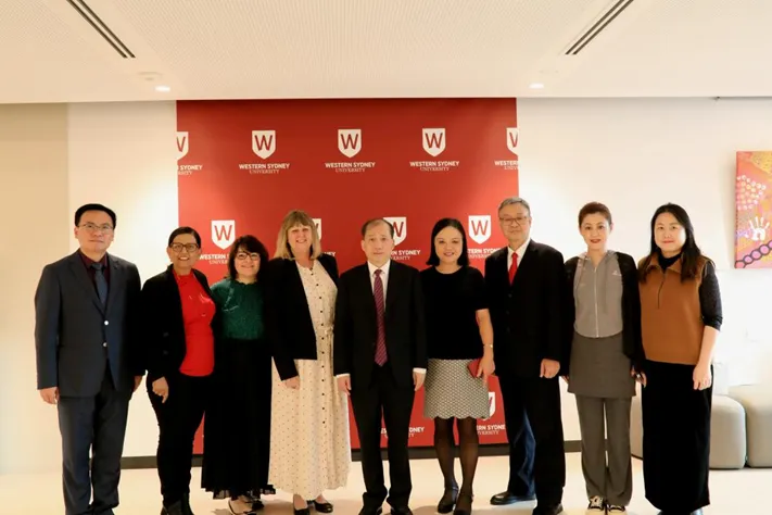 ✦2024年4月我校党委书记廖志坤率团访问西悉尼大学签署人才培养合作协议现场✦